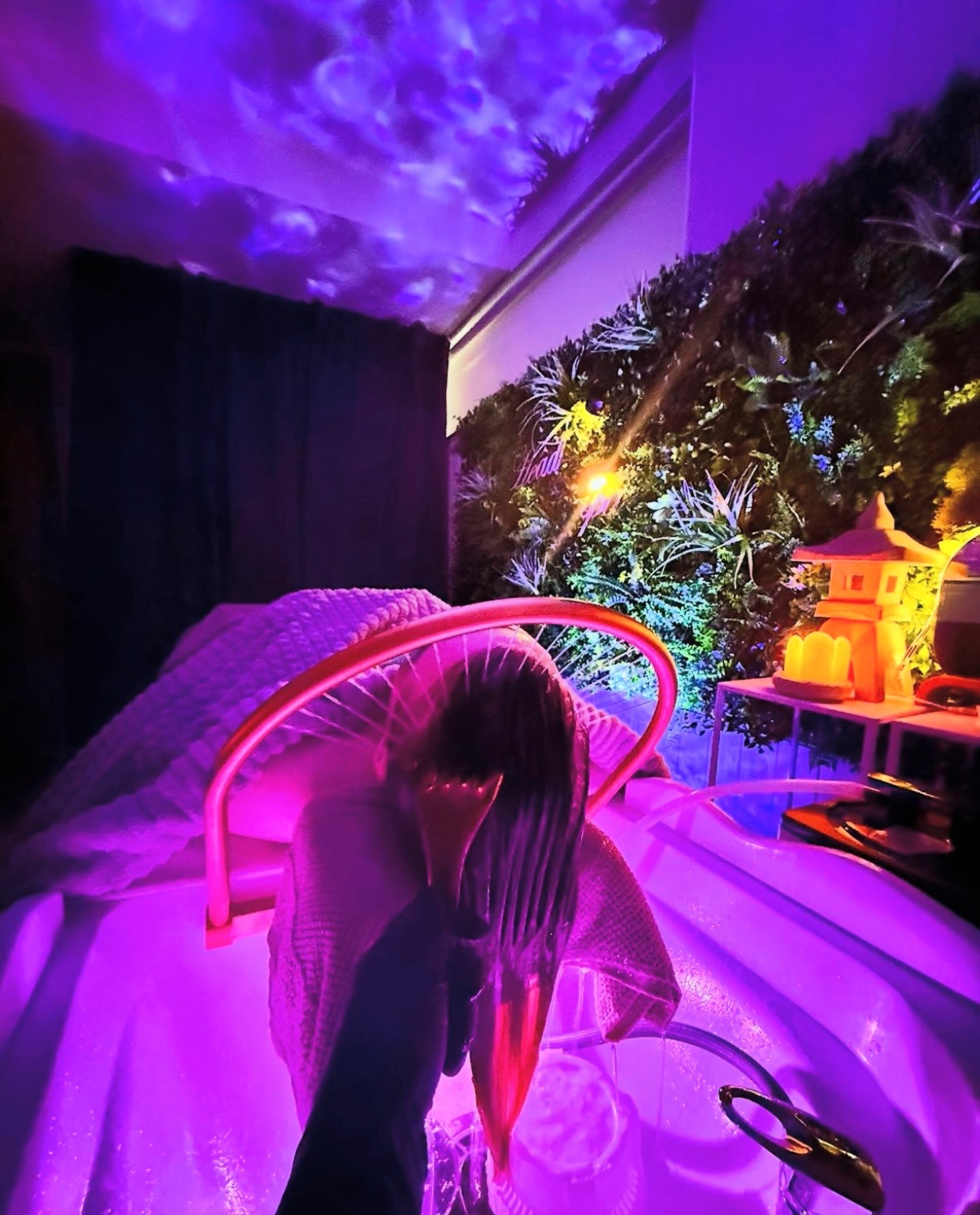 Náhled na pokožku hlavy přes trichokameru, následné zvolení péče postupu dle stavu pokožky a vlasu. Čištění pokožky hlavy bylinkovým peelingem Framesi, pleťová plátýnková maska s masáží obličeje, relaxační mytí vlasů s masážními přístroji, zážitková masáž hlavy a šíje kosmetikou Rituals, hydratační a výživný vlasový zábal Framesi, sérum na vlasy Framesi, masáž dekoltu bylinkovými měšci, bezoplachový kondicionér Malibu C, Tibetská zpívající mísa, projekce noční oblohy, sušení vlasů s pomocníkem Dyson Airstrait. V případě potřeby použití Zenz krému na obličej.